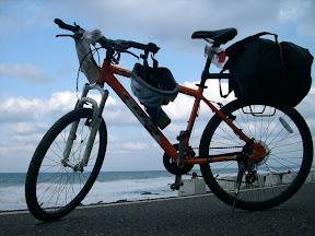 跟她稍微聊一下,因為她騎了很多年的車,在腳踏車還沒很風行的時候就開始騎,所以還滿懂得怎麼騎車(難怪可以把我海放>.<)!她還有教我如何運用不同的肌肉會比較省力,而且最重要的是,她車上掛馬鞍袋,不是在環島,而是她從金崙的山上跑去台東市買菜,說這樣比較便宜。我的媽呀!這年頭買菜不再是淑女車的專利,還有人騎登山車去買菜的,強= =b!