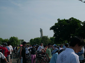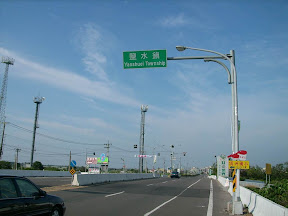 鹽水鎮。一直很想來看看蜂炮,但是我又很怕被炸到,所以還沒成行過!路上有遇到用走路在環島的人喔,似乎是某個宗教團體,穿著藍色的著裝,好像是用苦行來祈禱什麼事吧(走路的人年紀都有點老了@@),他們背後有旗子這樣寫著(我是看到環島兩字,才知道他們在環島),但是我看不清楚。雖然他們有補給車跟隨著,但是我還是很佩服他們的毅力!我有幫他們加油,只是他們都無動於衷,大概他們是很嚴肅在進行這樣的旅程吧。看到這樣的情形,我就像做錯事的小孩一樣,趕快走吧,不要打擾他們了!我不敢拍照,怕對他們不禮貌!